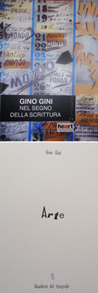 Gino Gini (né à Milan en 1939). Il a étudié au lycée artistique de Brera puis à l'Academia di Belle Arti. Il a été l'élève de Cantatore. En toute logique, sa première exposition personnelle à lieu dans une nouvelle galerie de Bera en 1958. Il fait partie de ceux qui introduisent en Italie la pratique du Mail Art et présente une exposition de ses expériences en la matière en 1981. Il participe au Colettivo Lavoro Uno dont les travaux sont présentés à la Biennale de Venise de 1976. Il présente une importante exposition au Mercato di Sale de Milan en 1987. Il est présent à l'exposition « Parole Immagine » à Galarate. Première exposition anthologique à la Villa Letizia de Trévise en 2000. Il fonde avec Fernanda Fedi l'Archivio Libri d'Artista en 1983. Il participe à l'exposition de la bibliothèque d'Alexandrie et en est le commissaire avec Fernanda Fedi de la quatrième édition en 2010. Il expose à de nombreuses reprises dans la galerie de Jean-Paul Aureglia à Nice à partir de l'an 2000. Il fait de nombreuses expositions en Italie et est présenté par la fondation Berardelli de Brescia en 2023.